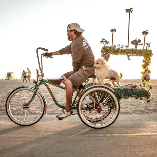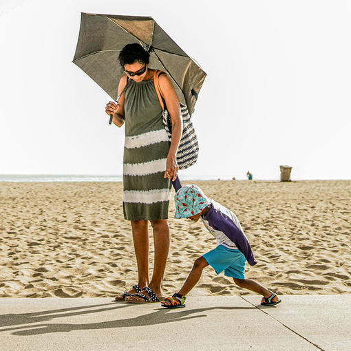 Located at the edge of western Los Angeles, the Santa Monica Beach Bike Path runs across the last strip of land before the ocean leads to the horizon. Just behind it to the east lies the Pacific Coast Highway, and further beyond that, the sprawl of LA. At the path, the chaos of the city gives way to a chorus of green noise: the hum of bike tires, the offshore breeze, seagulls and waves. As a kid, I spent long summer days here, lying in the warm sand, digging my hands and feet beneath it like a soft blanket. I go to this place often to recalibrate, but, while the path offers a reprieve from the chaos of the city, it is not lonely. Rather, there is an abundance of humanity. Some days, the path feels like a giant conveyor belt shuttling people across miles of white sand beach. Other days it feels like an epic stage across which an endless stream of characters enter and exit the scene. Over a two year period, I walked on the path from Temescal Canyon to Venice photographing the surfeit of joy I found there.